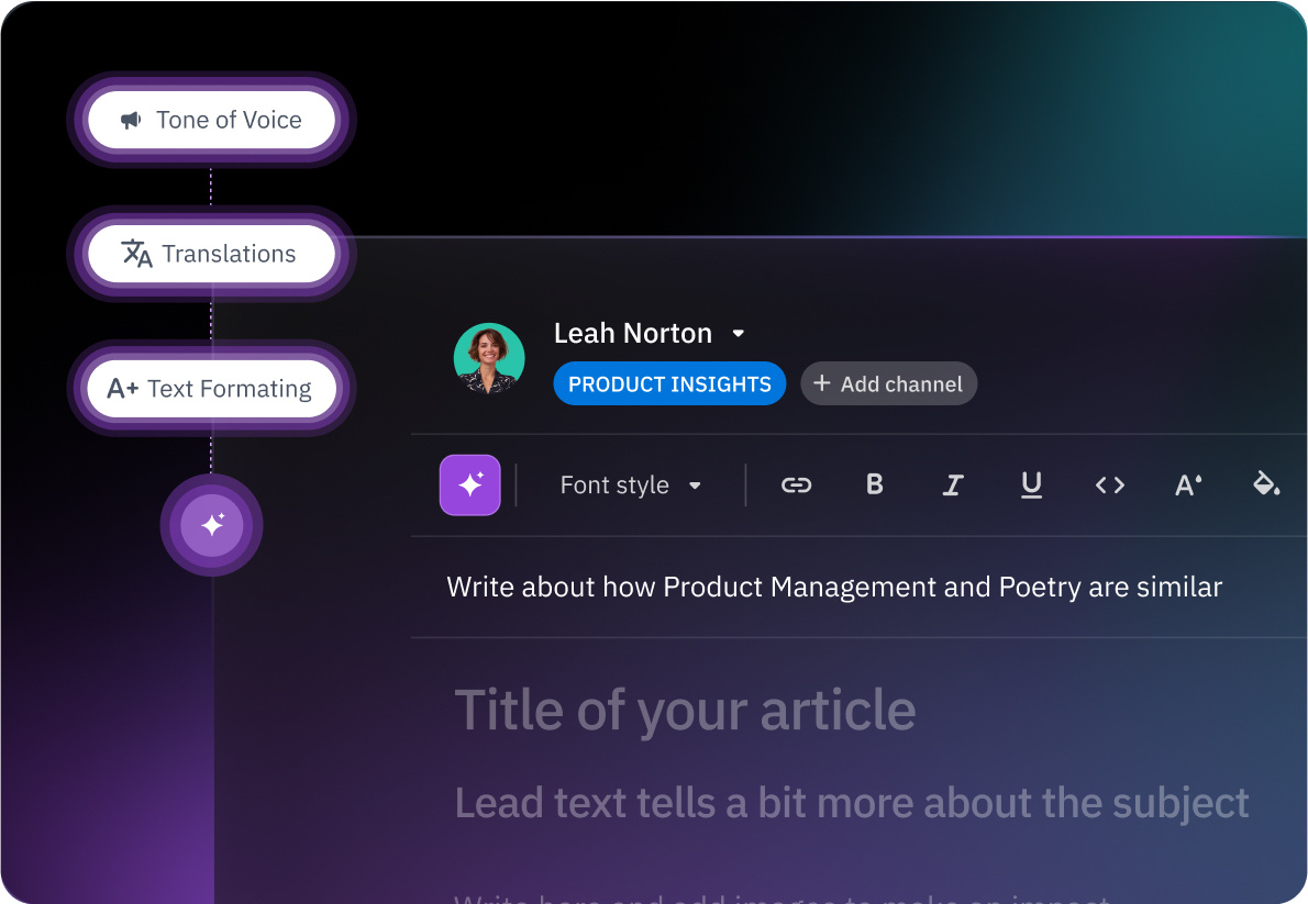 Don’t allow knowledge to get lost in a chat message, buried in email, or walk out the door when someone leaves. Connect your knowledge base with your comms and allow anyone to share and have access to the knowledge that lets them do their best work more easily.