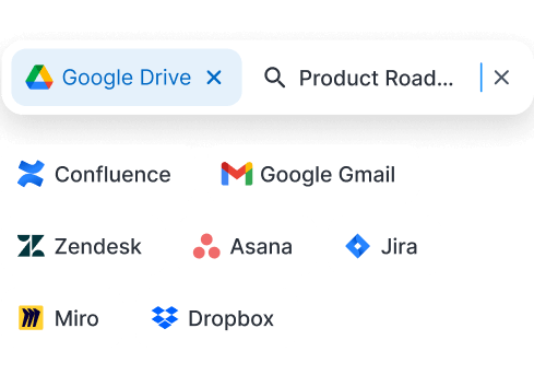 Reach outside your knowledge ecosystem and easily across popular external platforms such as Asana, Box, Dropbox, Jira, SharePoint, Confluence, Miro, Trello and Zendesk..