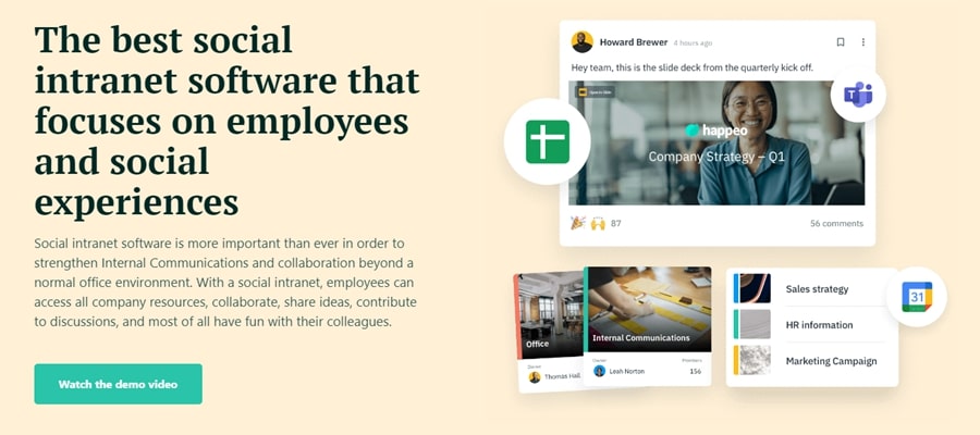 Happeo works as a social intranet and digital workplace.