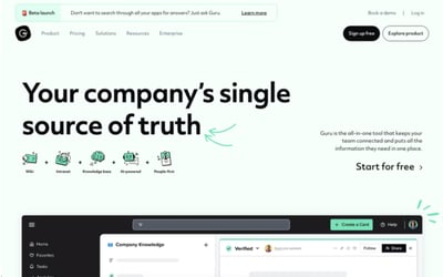 Guru simplifies sharing information across your organization with its all-in-one platform. AI-powered features adapt over time to team usage, improving functionality and cultivating a connected, engaged workforce.