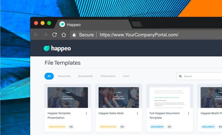 The URL you use to access your Happeo environment is the most present, consistent way to enforce your brand. Whatever you’re looking at in Happeo, it will always be there at the top of your browser bar! Some of our customers chose a simple URL with their company name in it. Others chose to brand the platform with its own unique name. Whatever you choose, that little extra flavor goes a long way to brand compliance.