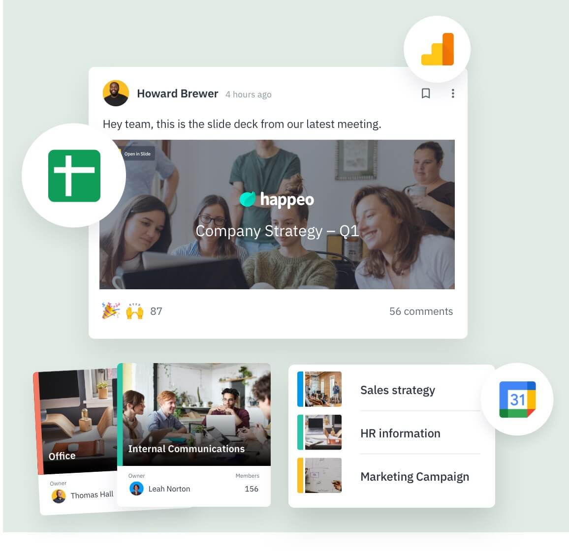 Happeo offers a remote employee-powered platform that completely changes the way your company communicates. With our intranet, enterprise social network, and collaboration tools, teams can seamlessly complete projects from home and improve their work-life balance. To learn about the benefits of partnering with Happeo, give us a call and speak with one of our team members today.