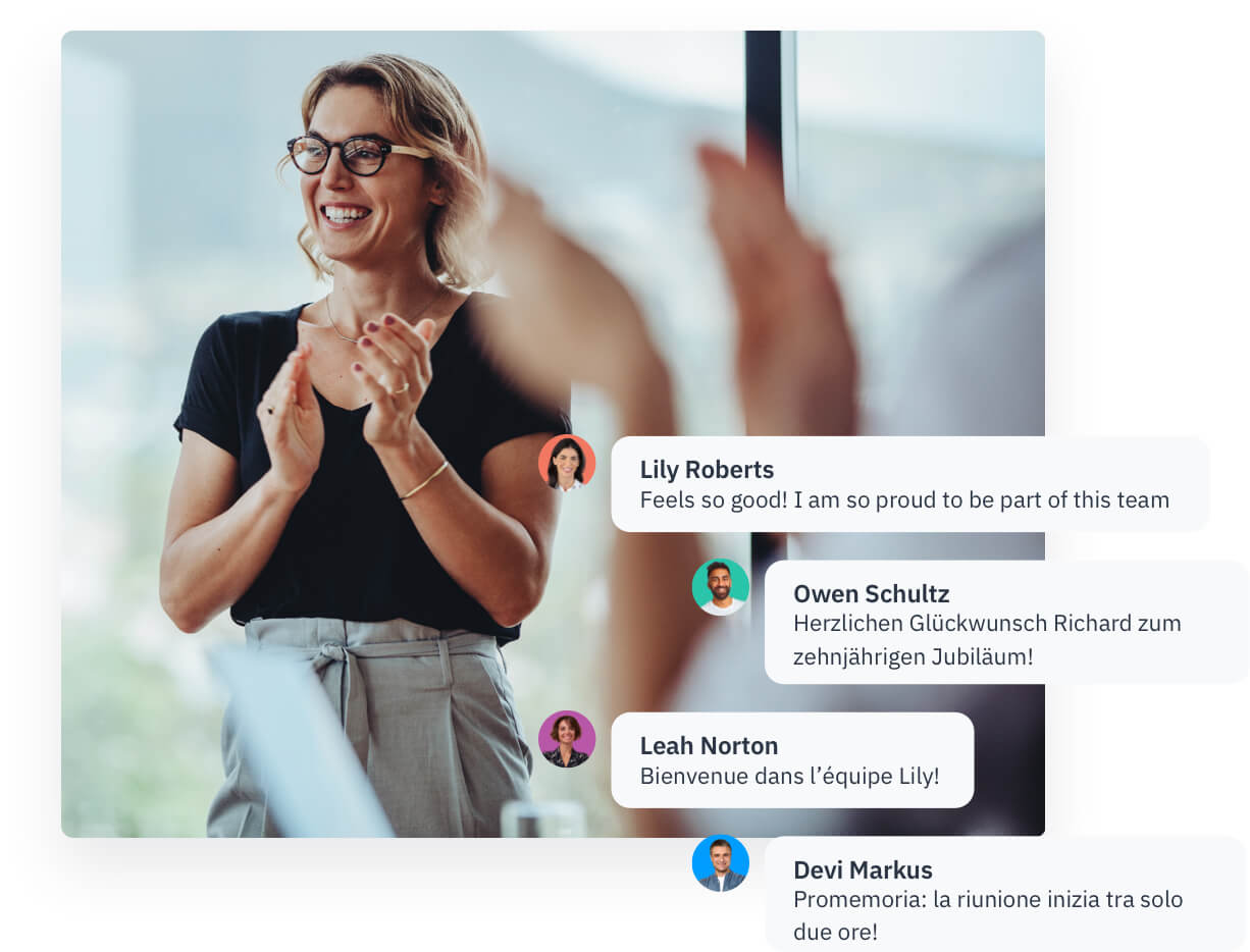 A modern intranet software is not only the centre of communication, but it is also a centralised information tool with many social features, such as a working employee directory, individual channels and communication tools that give you the opportunity to react to any postings that are being published. Sometimes receiving a smile-emoji from a colleague who is working from South Africa while you are sitting in Berlin can really make you feel connected, seen and valued, which is the base of having a good experience at work.
