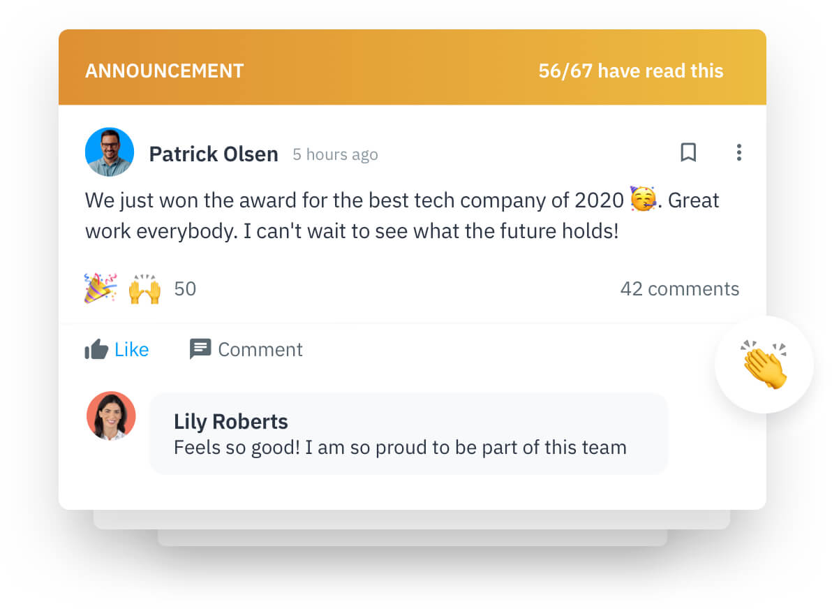 A working corporate culture is only successful once everyone in your company knows about it – and actually feels it. In companies where remote work is huge and, thus, employees are working from all around the globe, distributing the internal values can be a challenge. By using an intranet, you can easily spread your company culture among the people who are actually the most valuable parts of it. Through your newsfeed you can share inspiring stories of your company and your employees, through virtual events you can share new objectives and goals and through channels you can recognise the team members who are the true embodiment of your company culture.