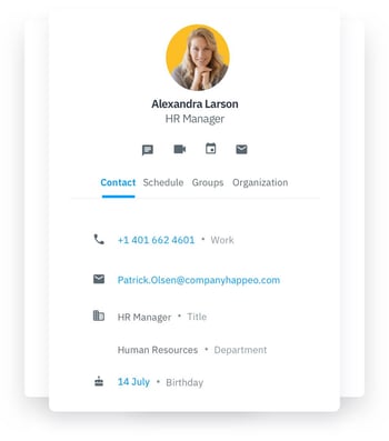 A contact card in Happeo's People Directory.
