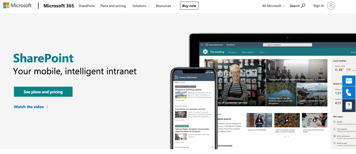 - Intranet Channels for posting, commenting on, and engaging in conversations