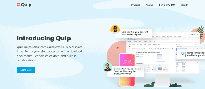 Quip is a platform that transforms Salesforce processes. It standardizes, automates, and embeds real-time, collaborative documents inside Salesforce records. This tool lets people form groups and work together on spreadsheets. Quip is accessible from both desktop and mobile devices, so it’s great for employees on the go.