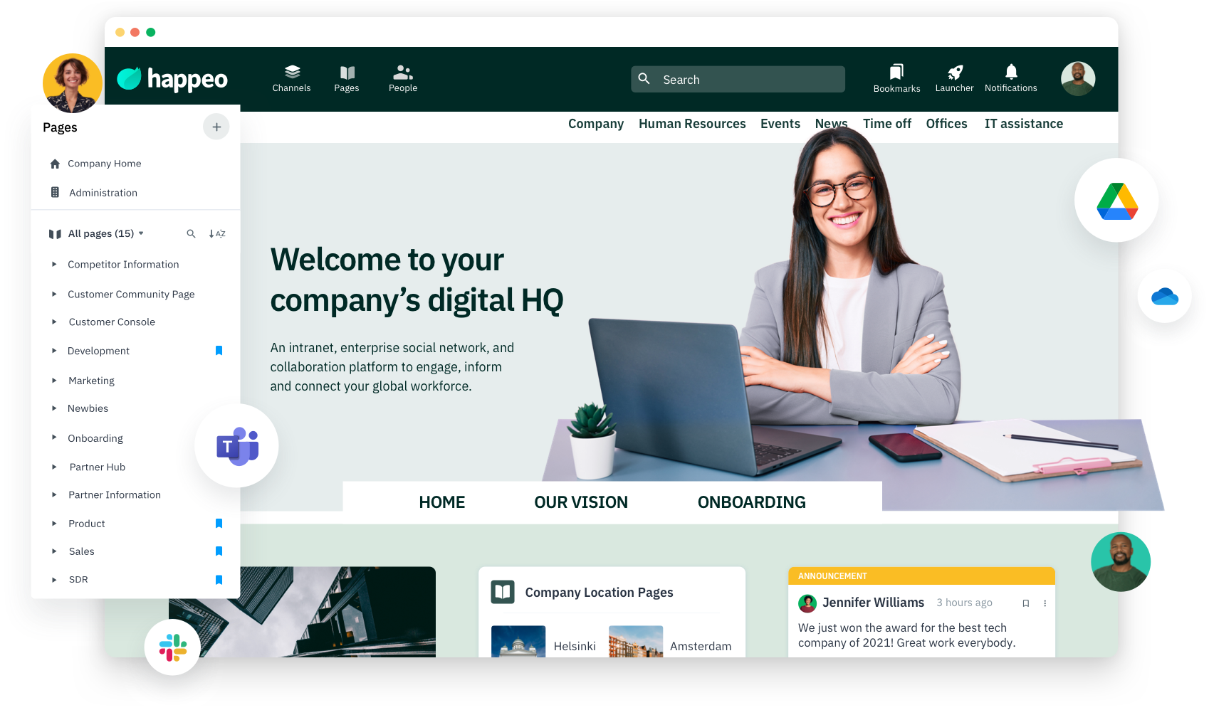 The Team Drives integration will help you keep pace with the rapid changes that can happen in teams and get even more value from Happeo and Google Workspace. We’re currently testing the integration and aim to roll it out in Q1 2017 for customers who are interested.
