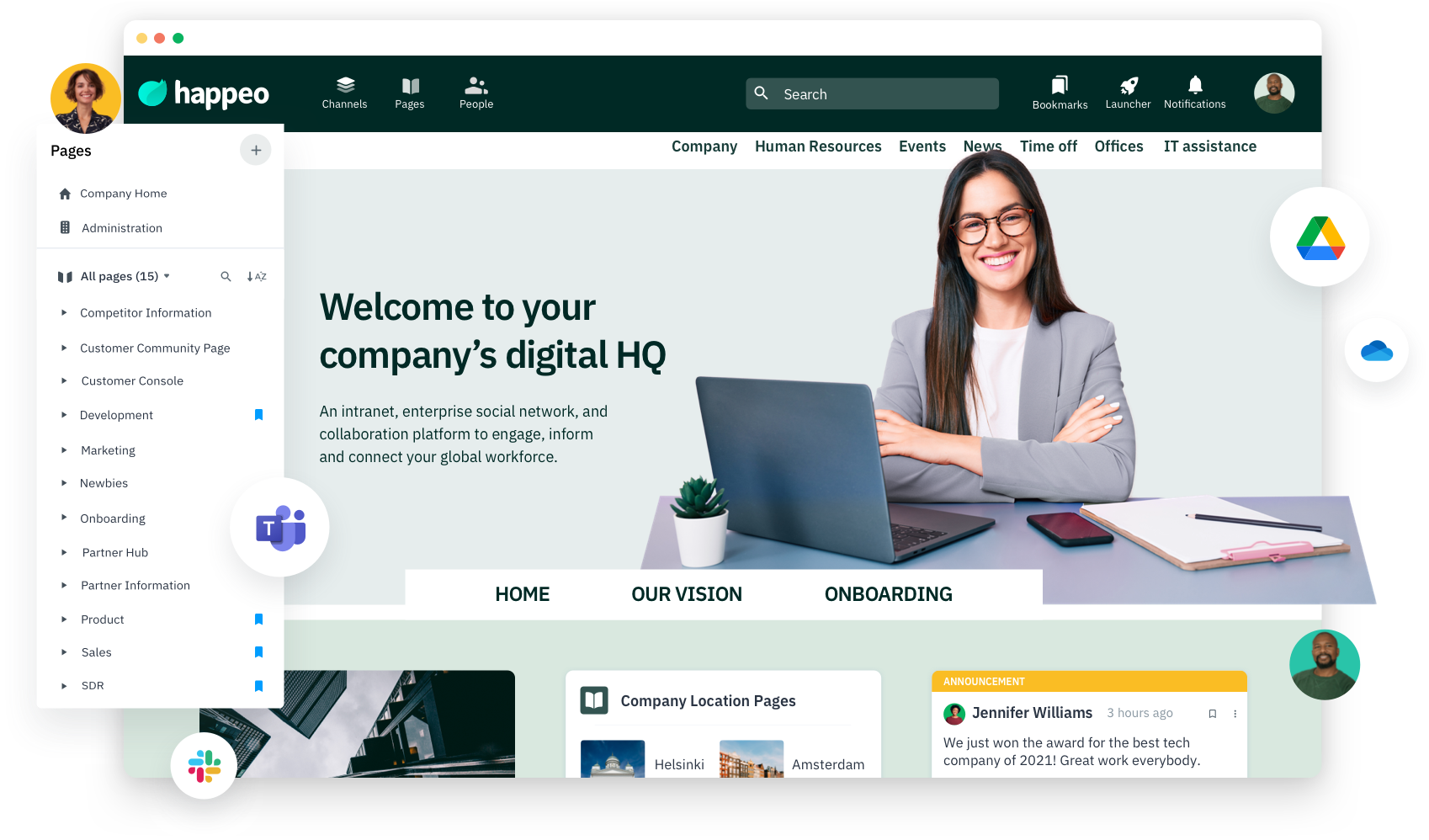 Happeo ist ein modernes und benutzerfreundliches soziales Intranet, das Ihre KollegInnen, Knowledge und Tools zu einer einheitlichen Plattform für Zusammenarbeit und Kommunikation verbindet.
