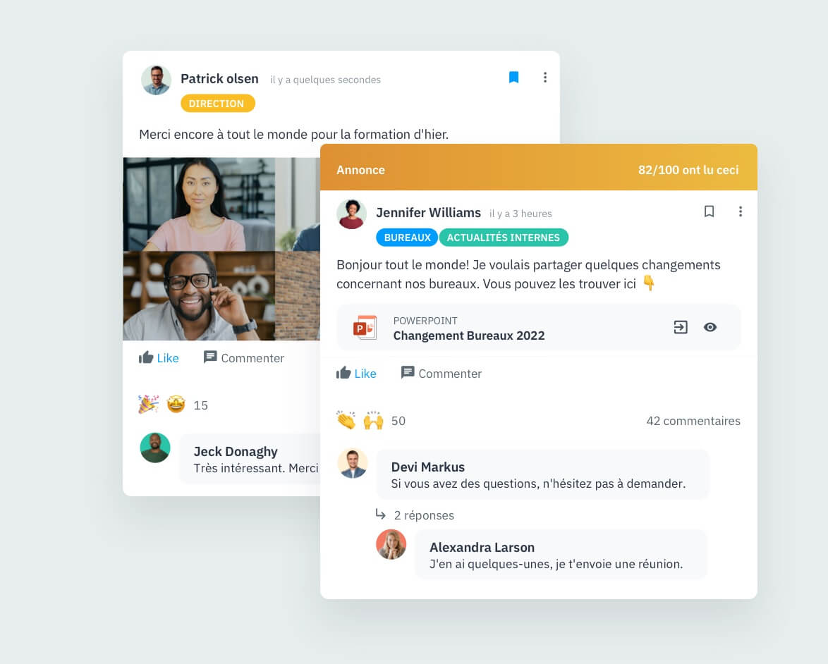 Au fur et à mesure que votre entreprise croît et que le télétravail devient la norme, garder tous vos collaborateurs informés, alignés, et engagés peut devenir difficile. Slack n’est pas fait pour héberger l’information. Google Drive et SharePoint sont plus adaptés, mais peuvent vite devenir chaotique. Et le va-et-vient constant d’emails est une énorme perte de productivité.