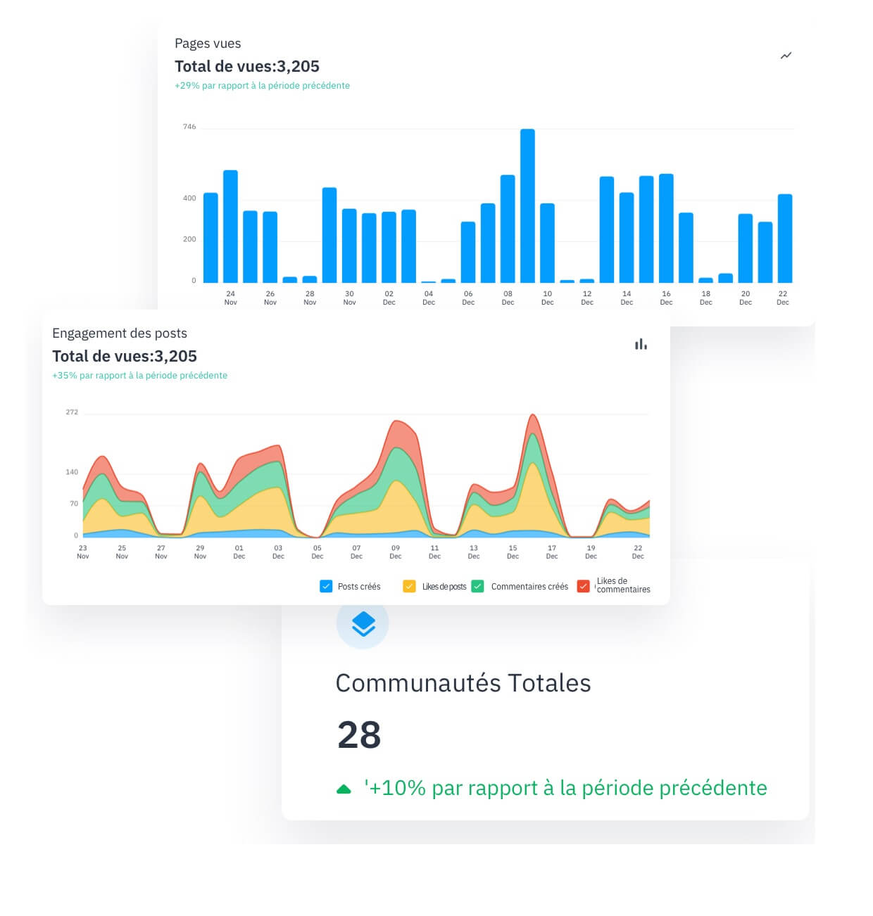 Bénéficiez d’un aperçu rapide des Communautés les plus actives et populaires, ainsi que des interactions qu’elles suscitent.