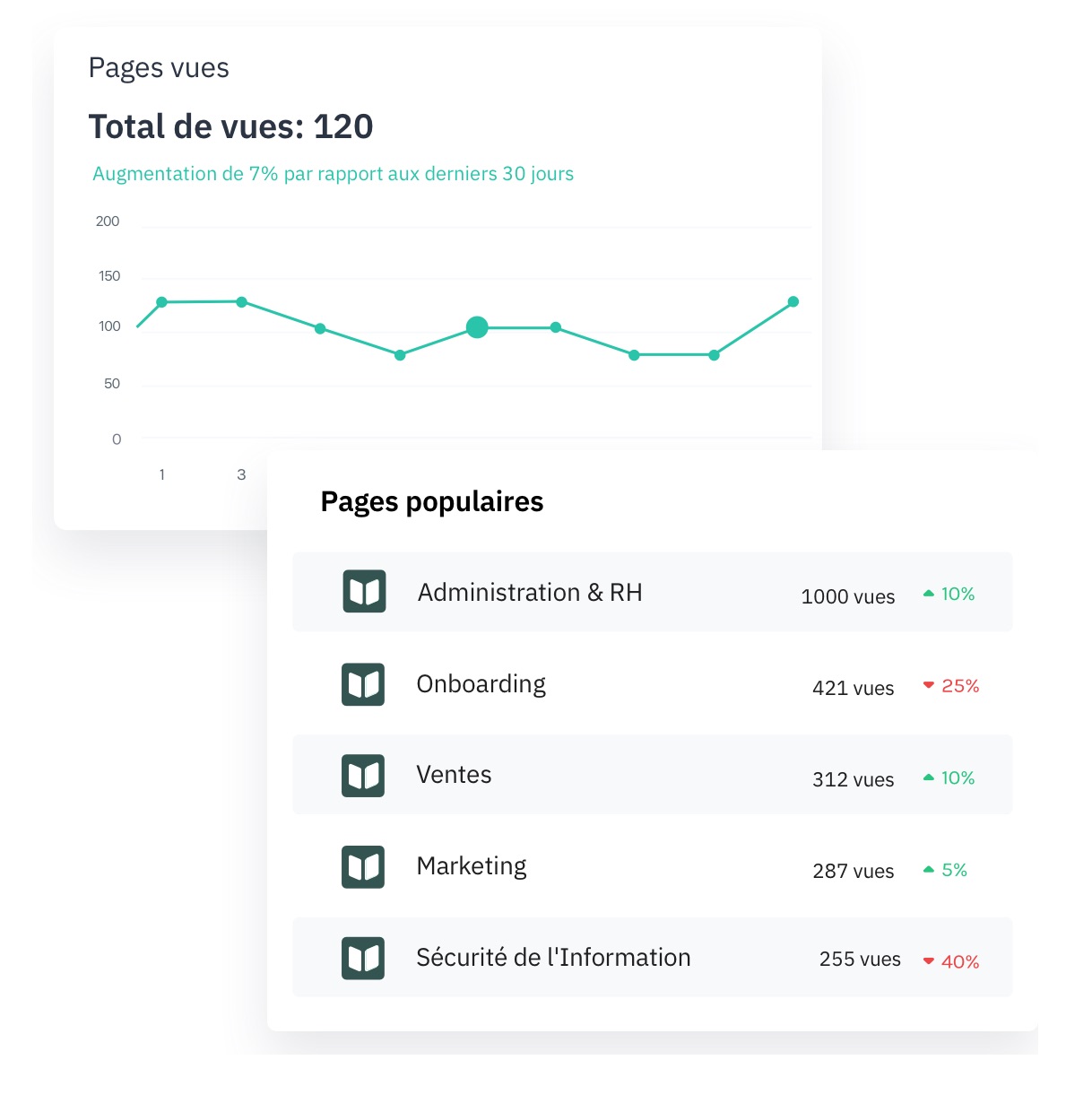 Voyez rapidement quelles Pages intranet sont les plus lues. Comparez-les facilement et analysez leur pertinence.