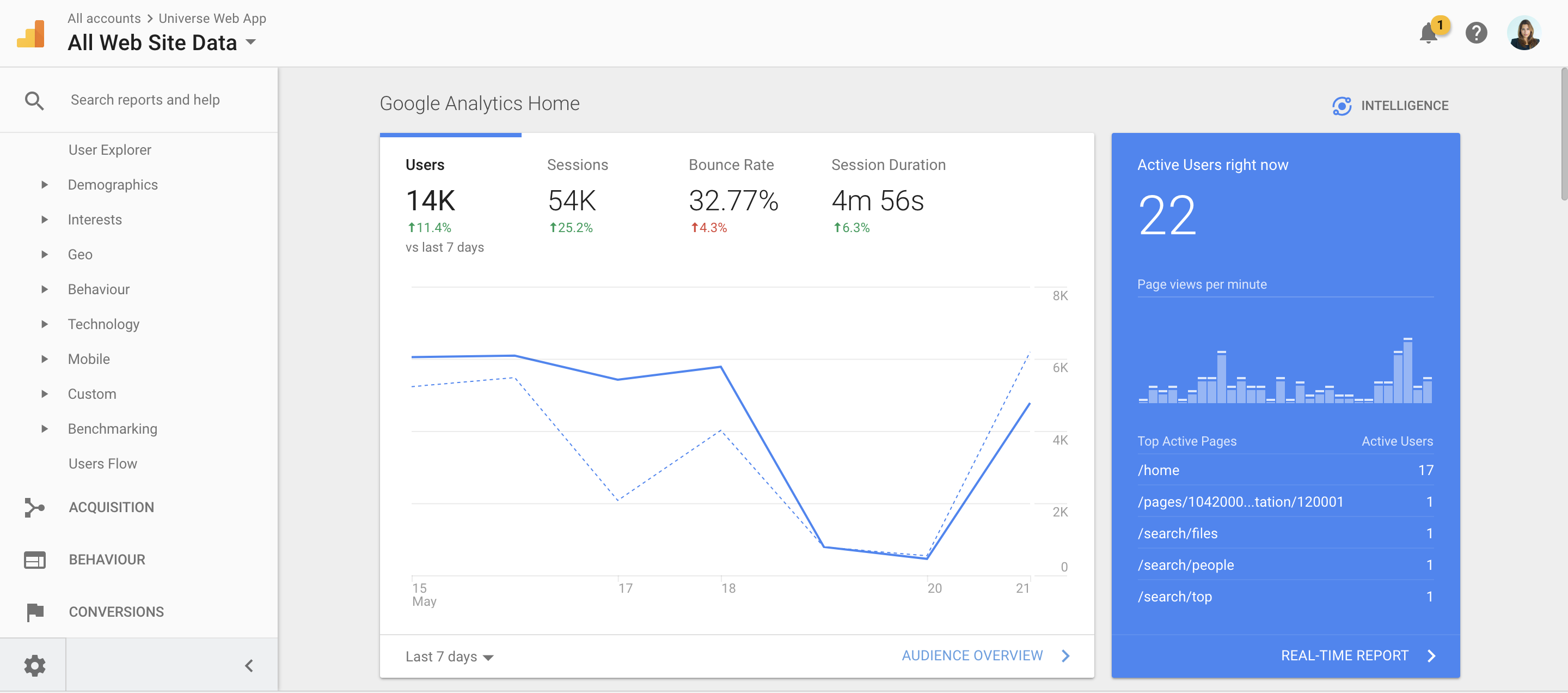 Cet article est destiné aux débutants de Google Analytics et vise à passer en revue certains des rapports les plus utiles pour obtenir des informations précieuses sur le comportement de vos utilisateurs de votre lieu de travail numérique Happeo.