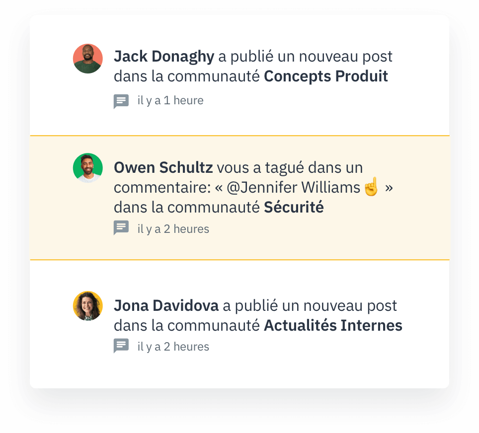 Tout le monde dans l’entreprise peut contribuer, une Page, une Communauté, ou une publication à la fois. Et toujours de manière simple et rapide.