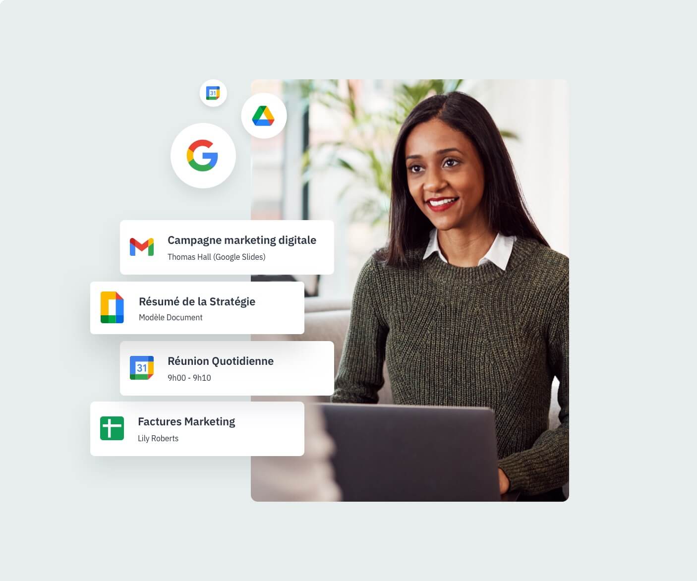 Tout est trouvable en quelques mots clés. Peu importe où se trouve l’information, ou le format de celle-ci. Vous pouvez même décider quelles applications intégrer : Microsoft 365, Slack, SharePoint, Confluence, Jira, Zendesk, et plus encore.