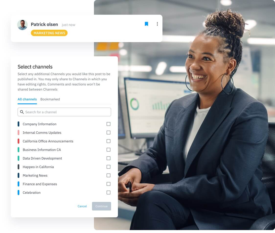 Targeting news is great, but what if one post or article is relevant to multiple communities? That’s where Happeo will make your life easier. Post to multiple channels at once from any given location, and just like we said: the right news will always hit the right people.