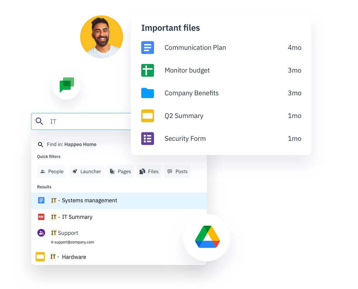 Happeo is a modern take on the ‘ole intranet software. Ghostwrite on behalf of your CEO. Get a four-eye check before it goes live with post-approval workflows. Embed videos, GIFs, Slides and other Workspace files – in just a few clicks or drops. A rich internal-content experience doesn’t need to be complicated, which is why even Admins benefit from our user-first design mantra.