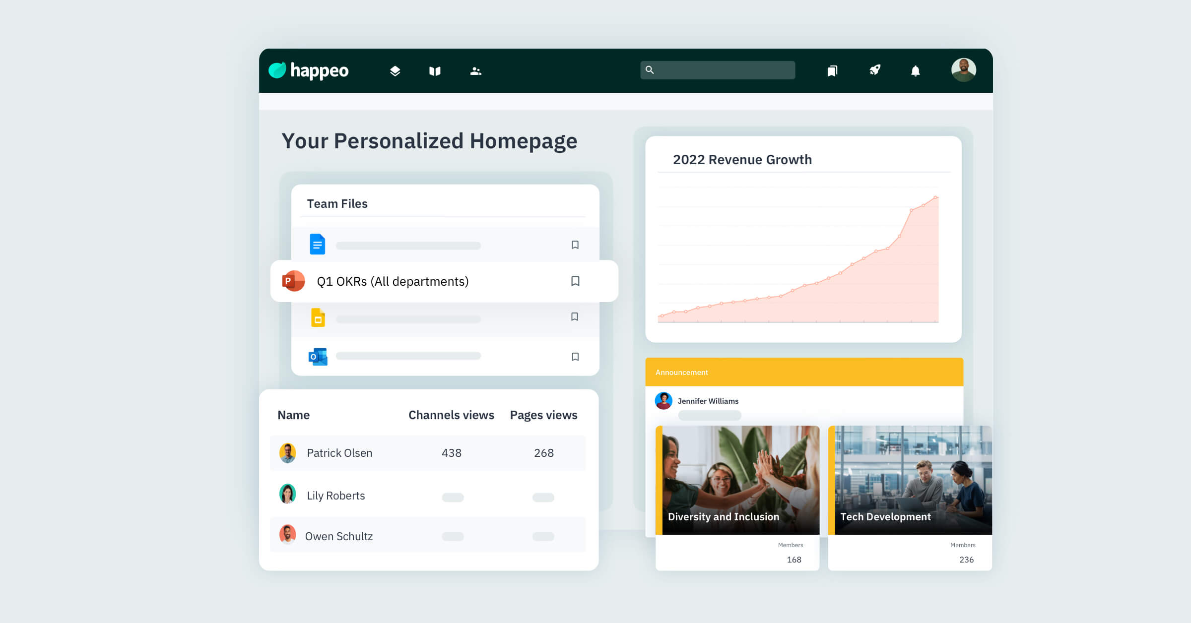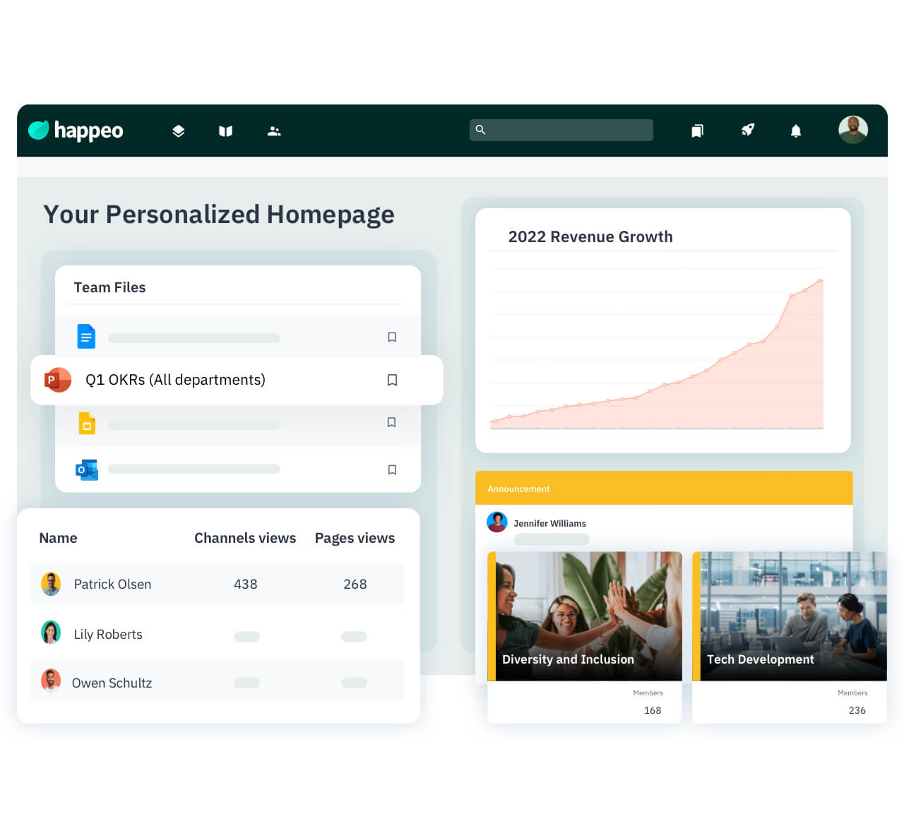 Rescue critical information from email and other black hole channels. A central source of truth houses accurate information to eliminate misinformation, streamline content, and keep employes up to date on everything they need to know, regardless of their location.