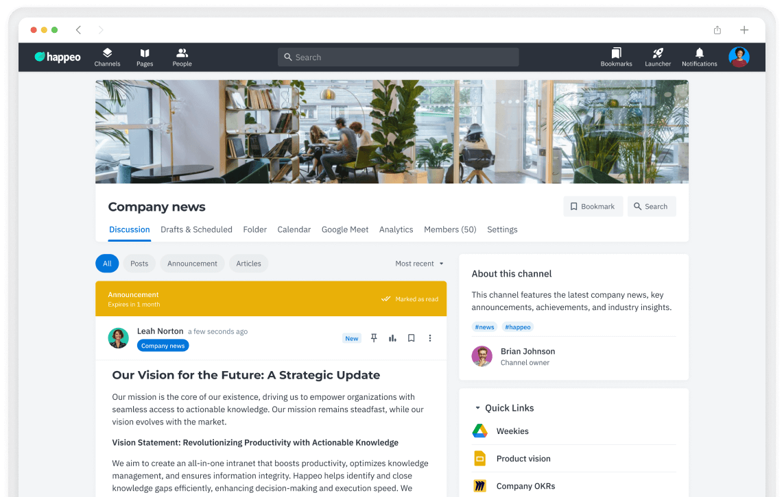 The AI-powered intranet that turns knowledge into action and revolutionizes productivity.