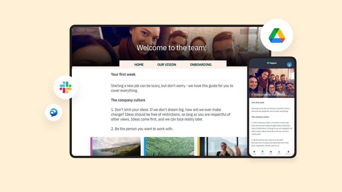 Happeo streamlines work by seamlessly integrating with Google, Microsoft, and other tools. It automatically organizes content—even from messy drives—and eliminates manual user setup, reducing software fatigue.
