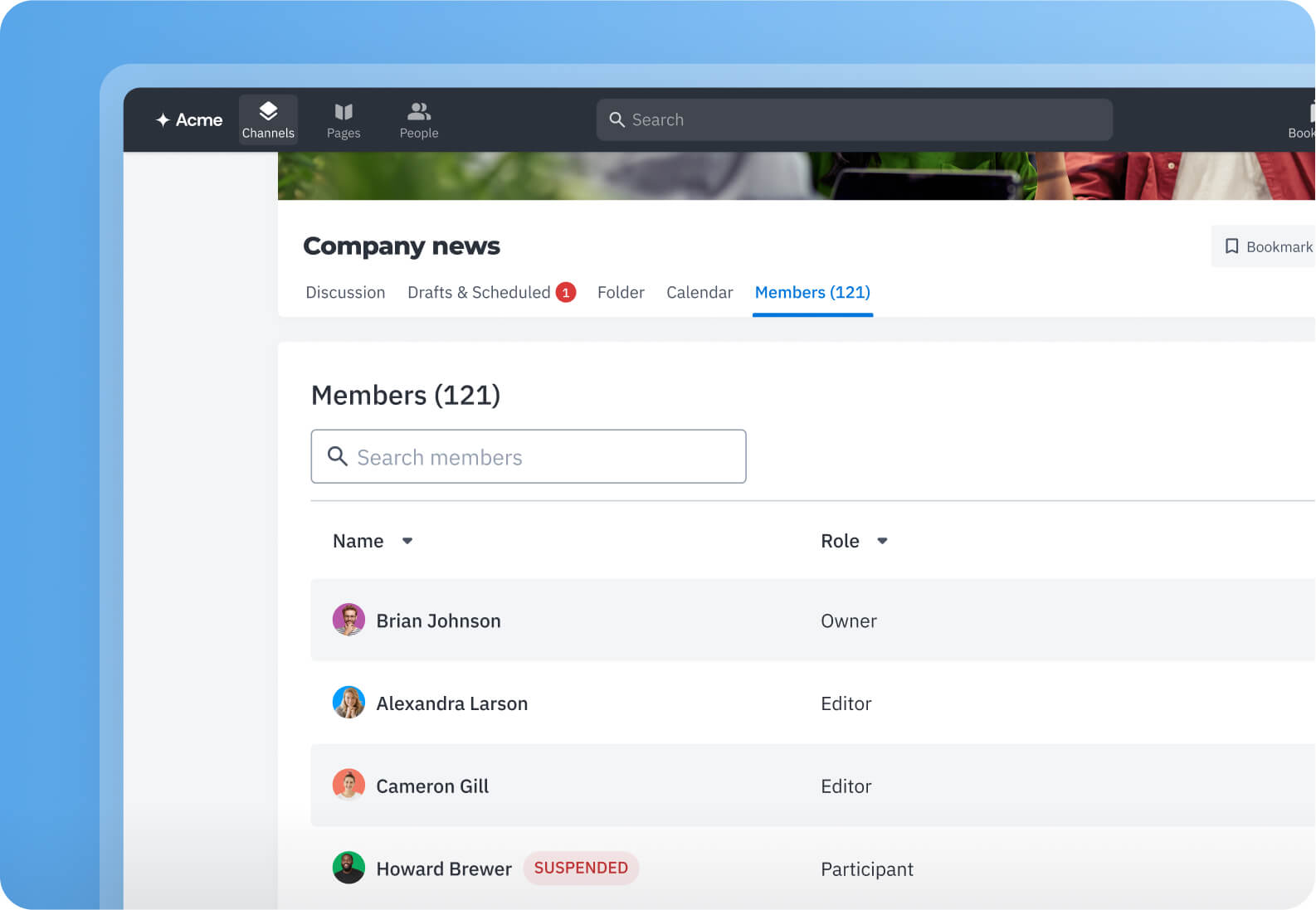 Bring everyone together across the organization as one team moving toward one purpose. From our in-app org chart to easy access management and Channels for collaboration, Happeo supports every employee across every team.