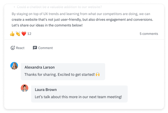 Knowledge isn’t locked away in silos. Our dynamic platform connects Pages with structured internal comms features to keep everyone up-to-date.