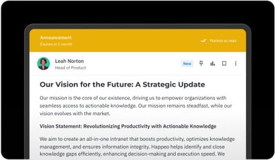 The intranet that unlocks productivity, engages employees, streamlines internal communication, and turns information into actionable knowledge.
