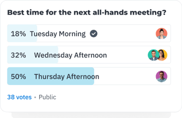 Happeo Polls help you empower your workforce to share their voices and gain valuable insights directly through Happeo Channels, driving informed decisions across your organization.