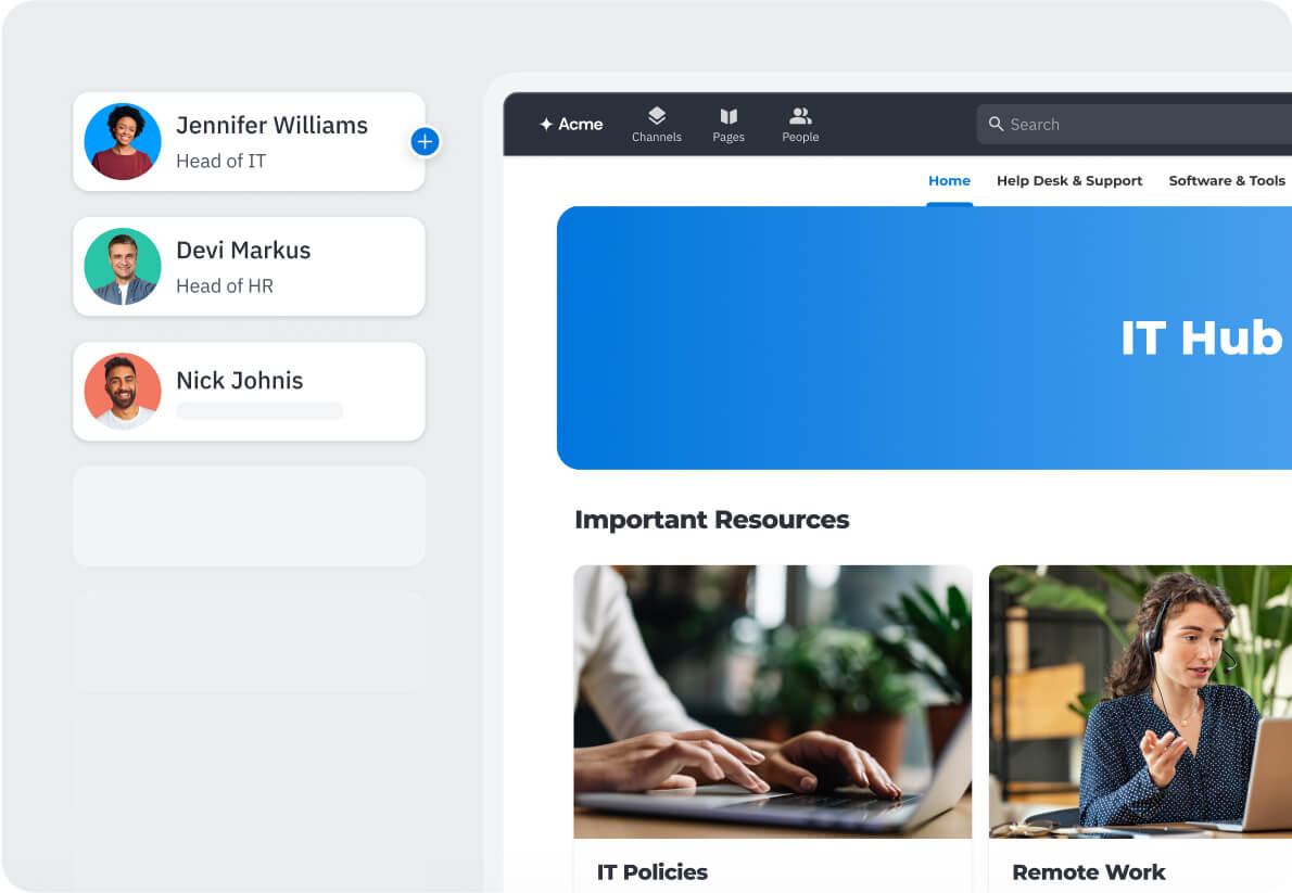 Get to know colleagues, connect across teams, and build a collaborative culture with Happeo’s People Directory and structured internal comms features.
