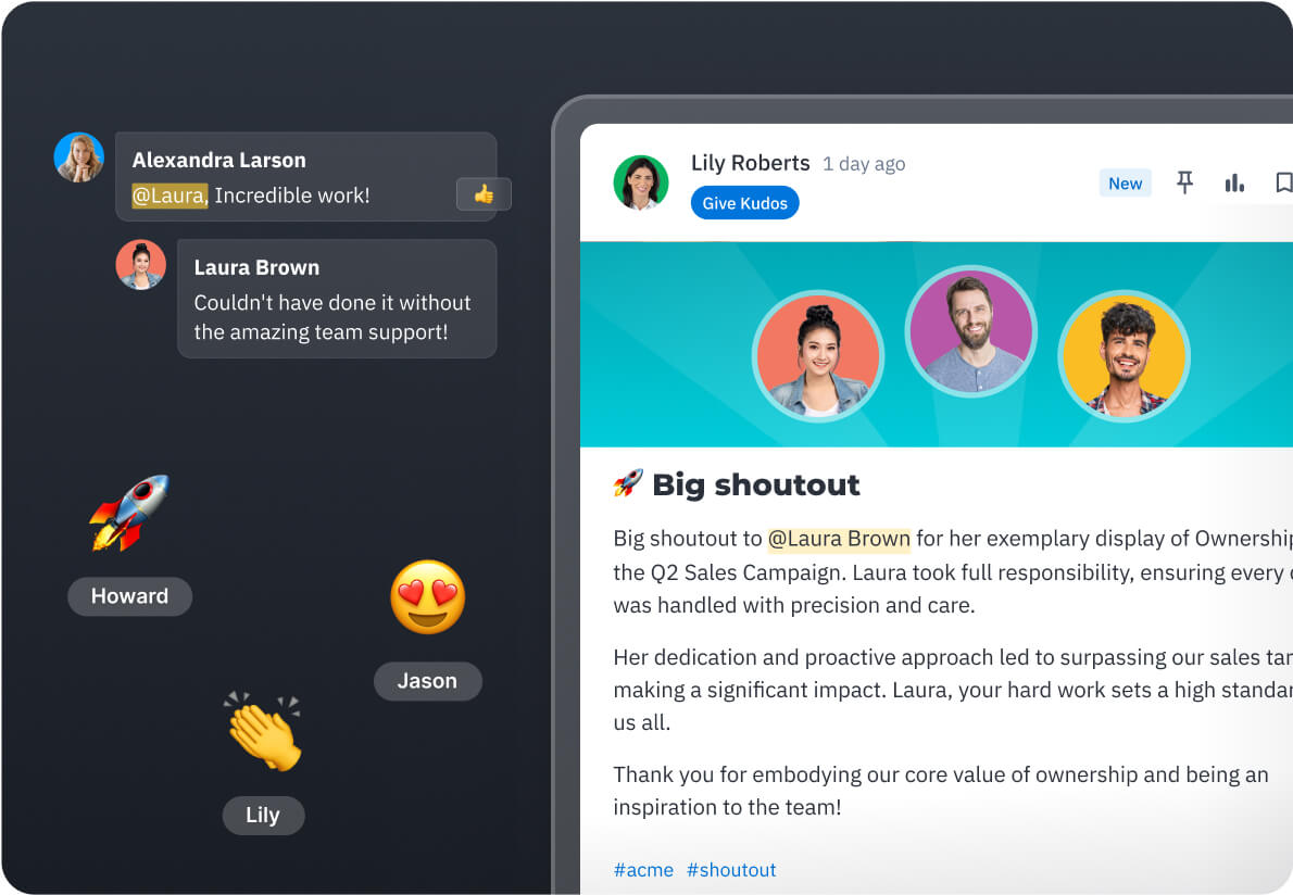 Break down silos between teams to align as one organization and drive toward common goals. Create happier and more productive teams through shared missions and vision.