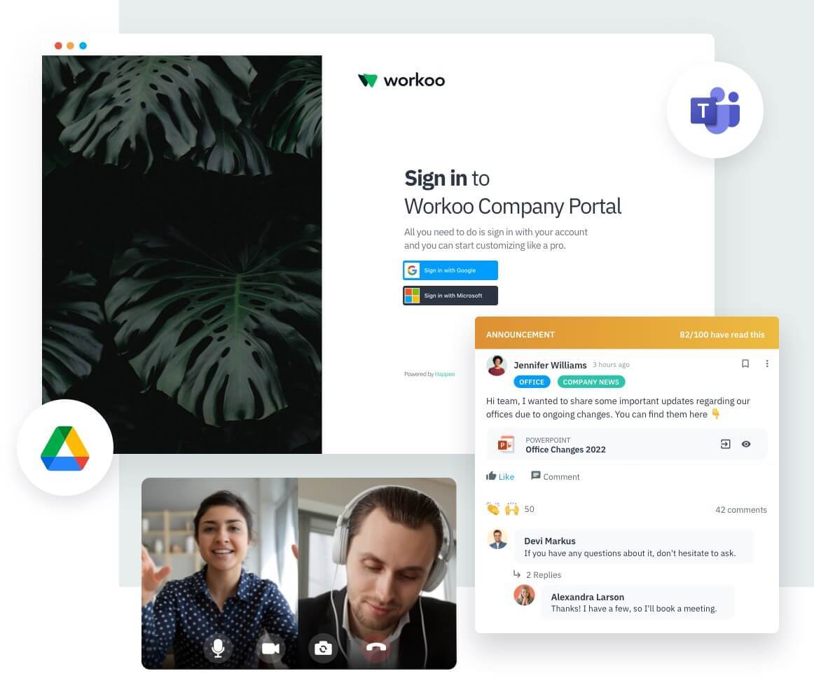 The all-in-one enterprise social intranet, knowledge base, digital workplace, Internal Communications tool, and people directory – all working perfectly with Google Workspace (formerly G Suite) and Microsoft.